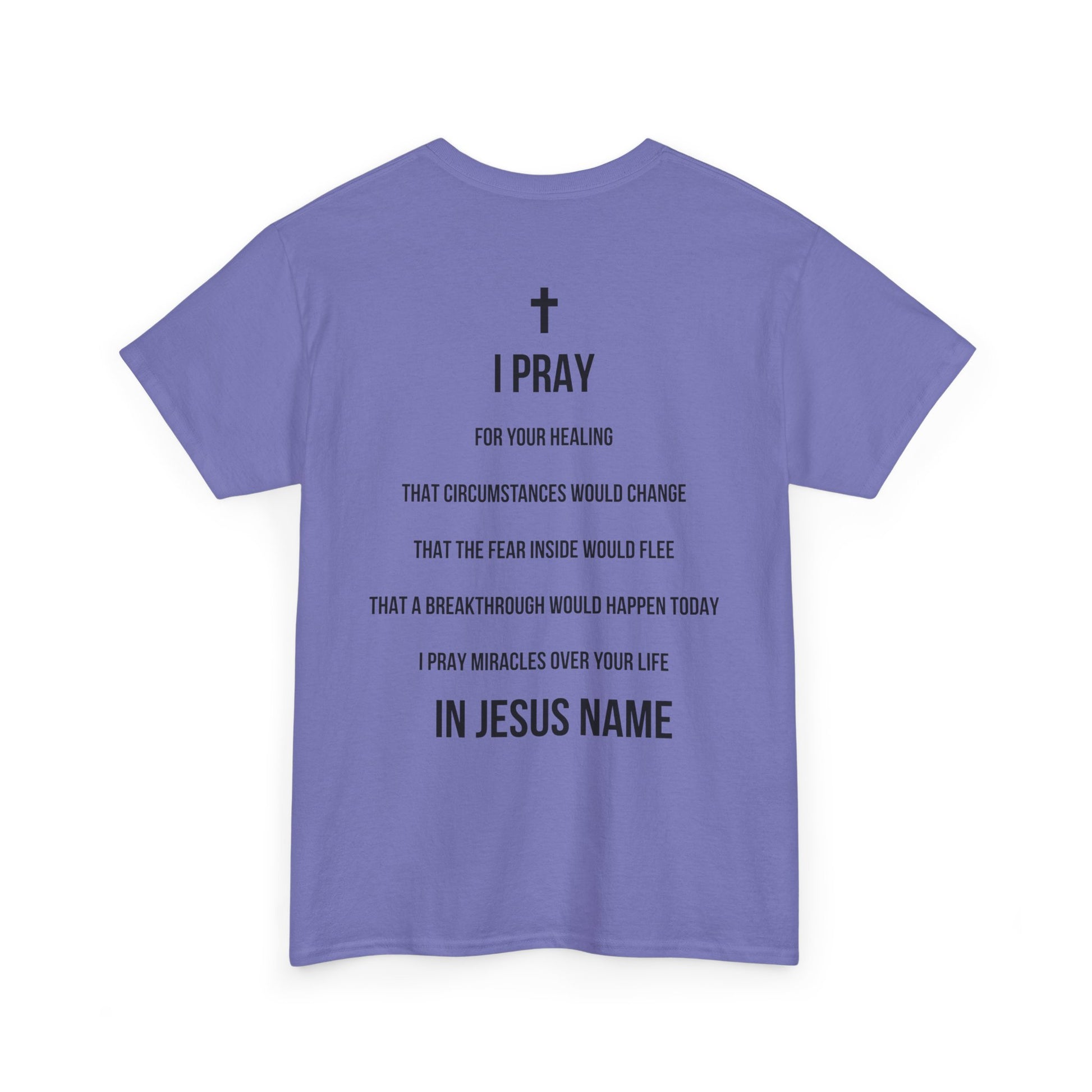This Unisex Heavy Cotton Tee embodies comfort and faith. With its classic fit and soft fabric, it’s the perfect choice for anyone seeking a casual yet meaningful addition to their wardrobe. The subtle front cross and uplifting prayer on the back bring a sense of hope and inspiration, making it a great daily wear item. Ideal for individuals who value comfort and a positive message, this tee fits seamlessly into both everyday outings and spiritual gatherings. Perfect for special occasions such as religious celebrations, holiday gatherings, or simply as a thoughtful gift for friends and family. Wear it to church, casual meet-ups, or as a statement piece year-round, expressing your beliefs with style.