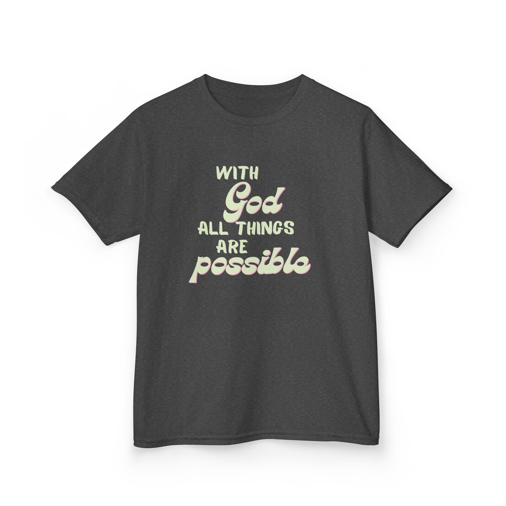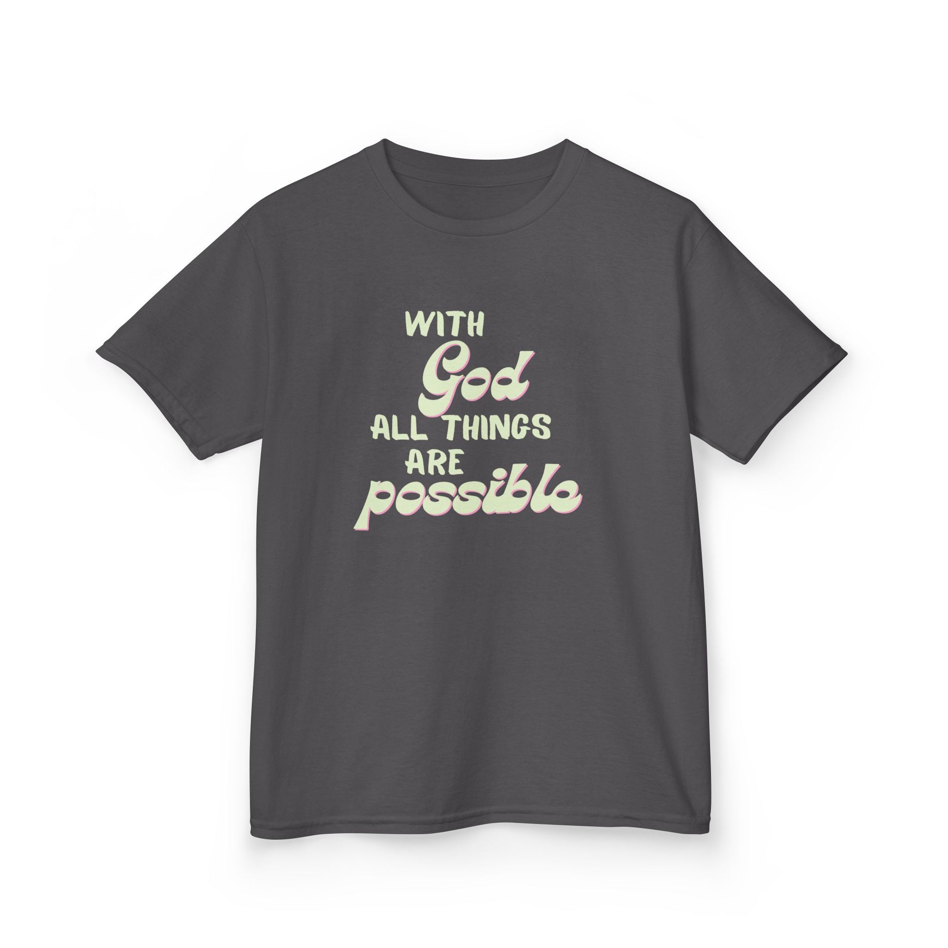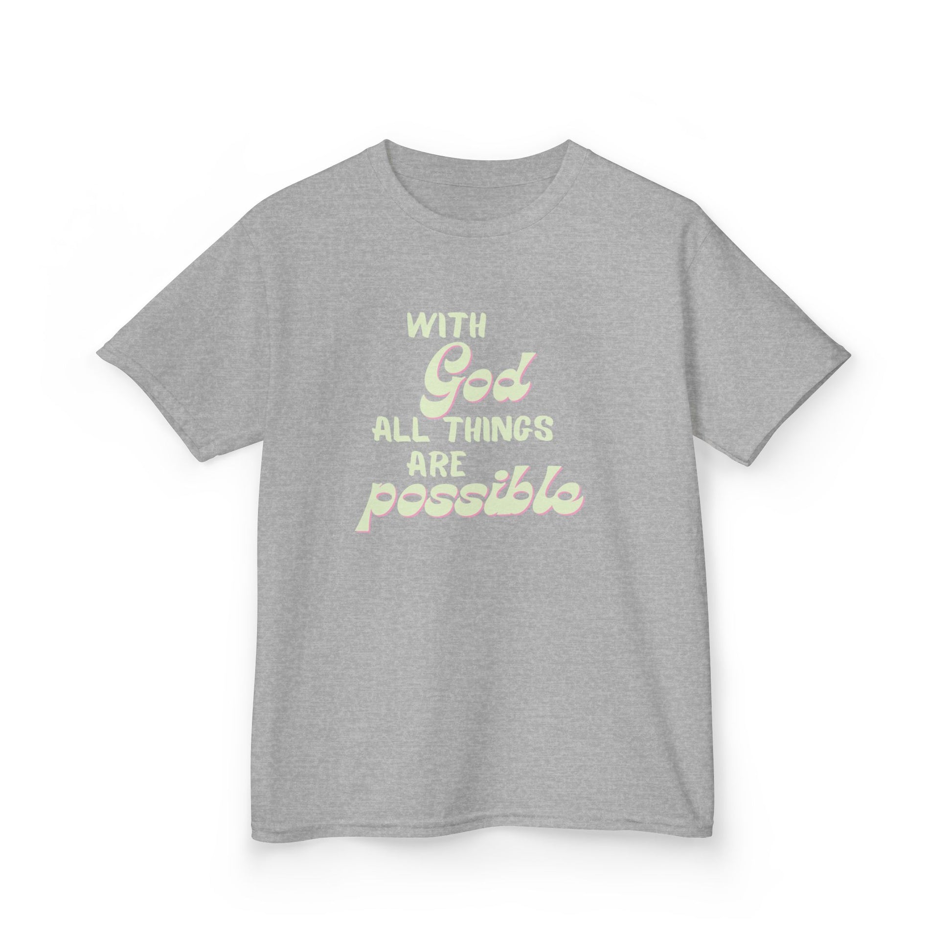 With God All Things Are Possible, Kids Inspirational Tee, Motivational T-Shirt for Children Faith-Based Apparel