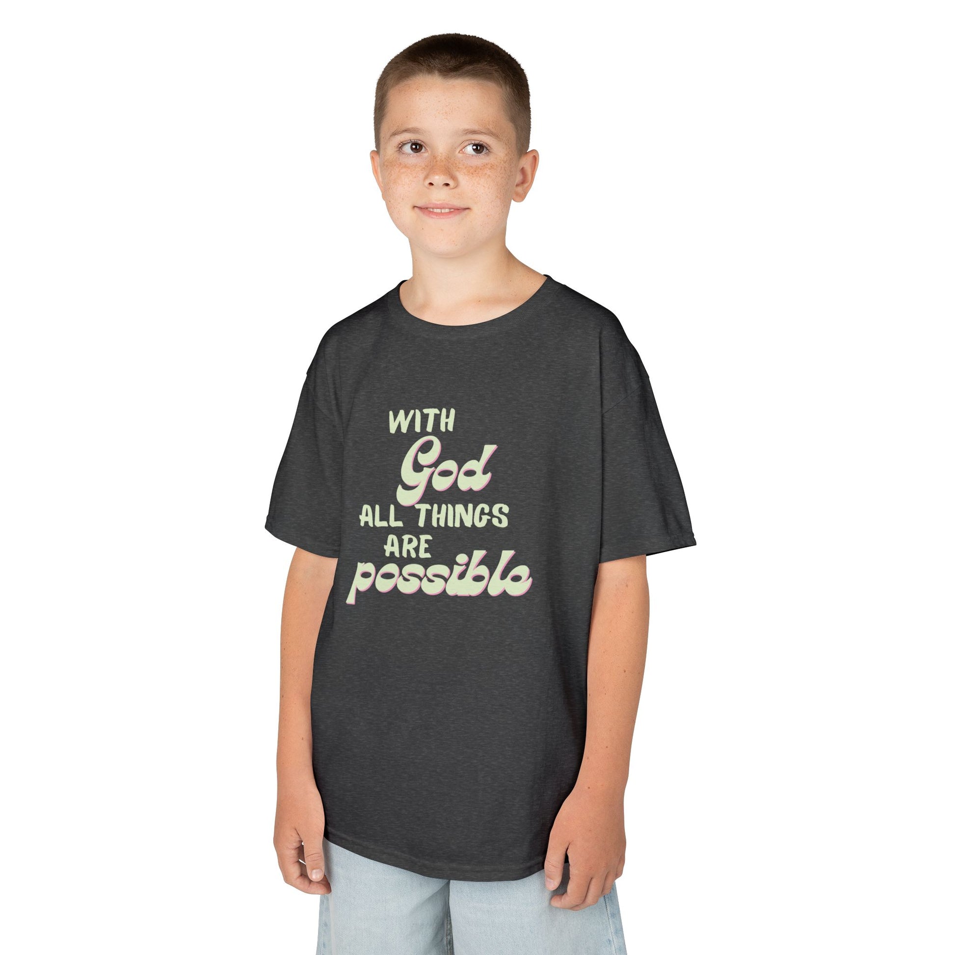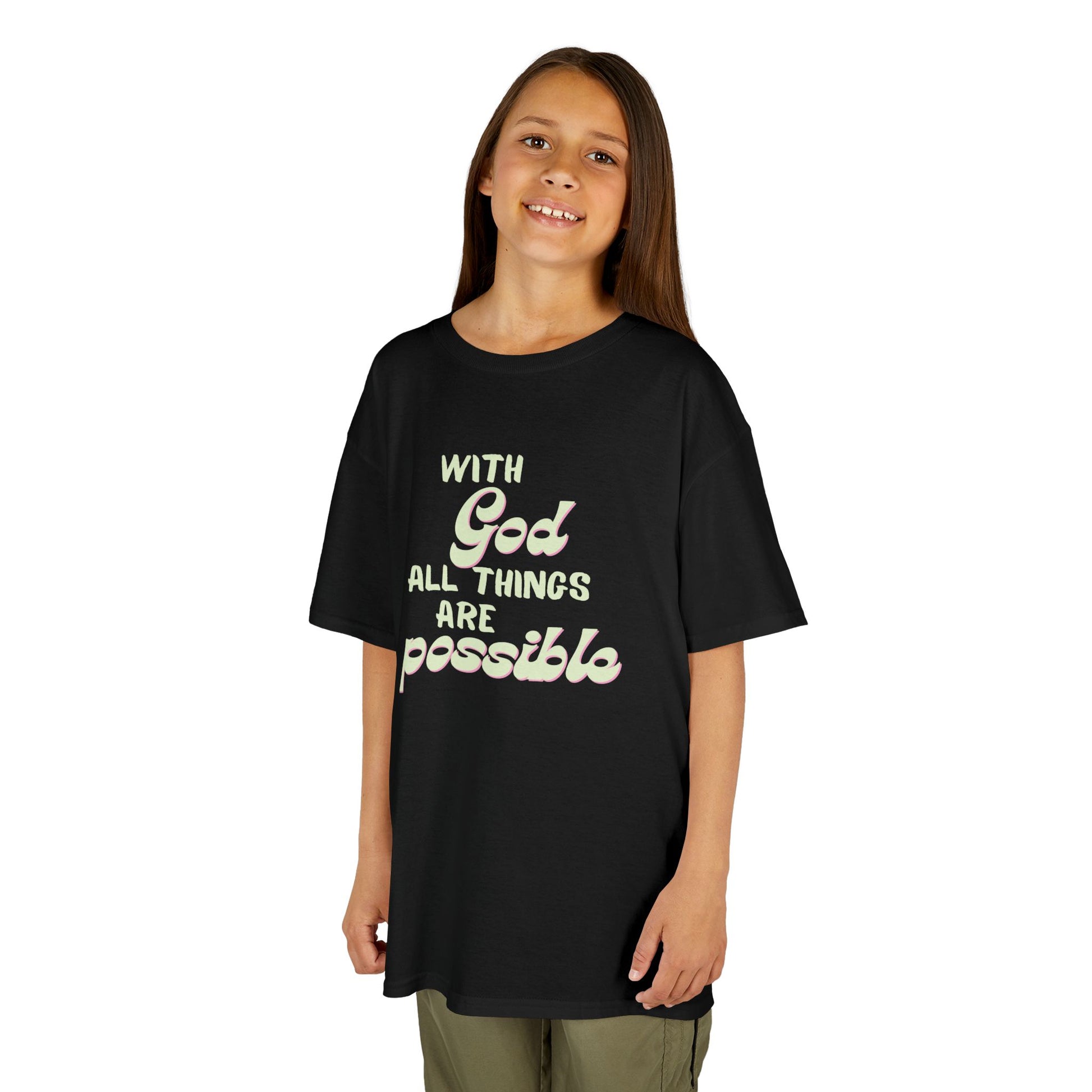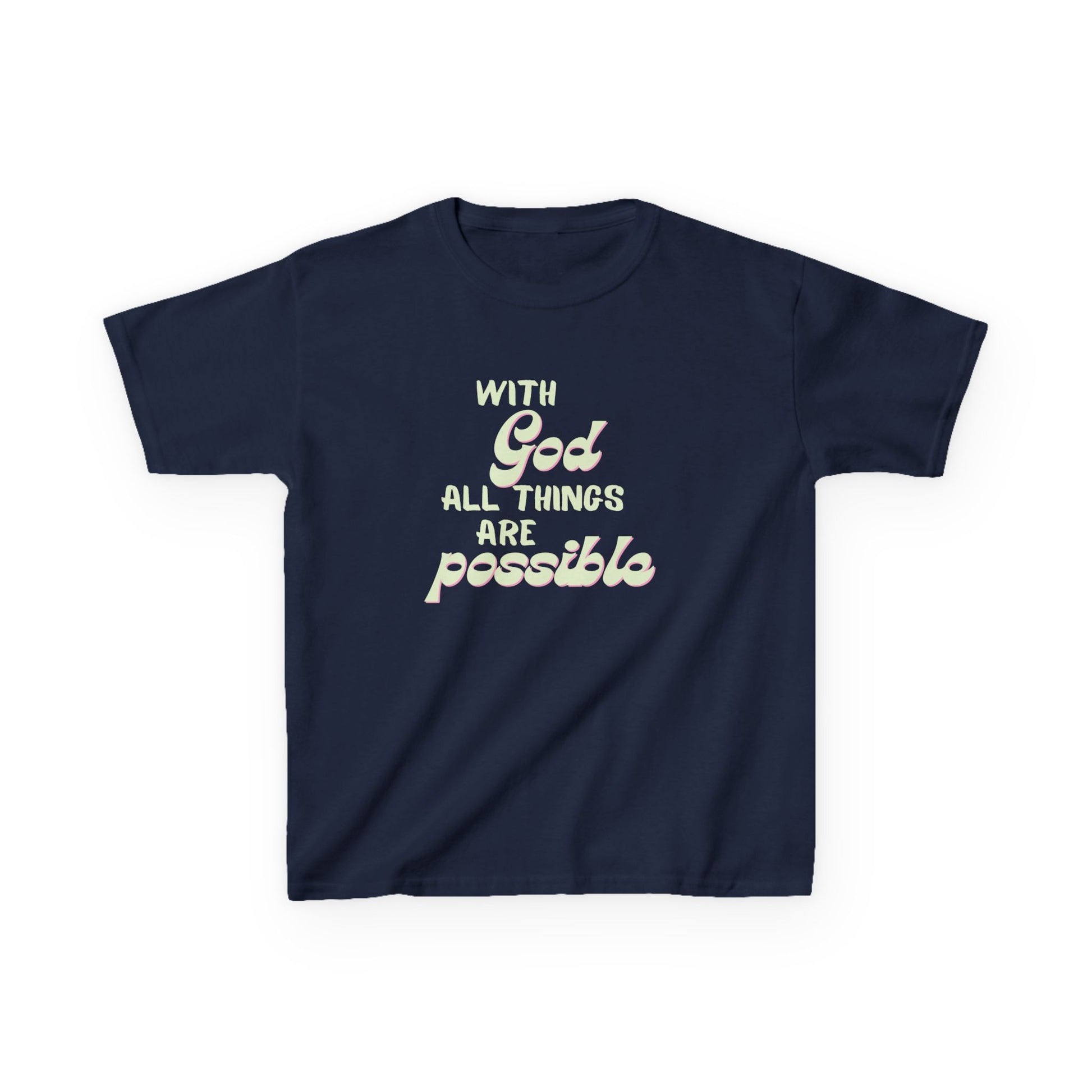 With God All Things Are Possible, Kids Inspirational Tee, Motivational T-Shirt for Children Faith-Based Apparel